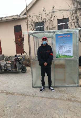 18级机电一体化1班马良才,自从疫情发生他主动参加了家乡日照市莒县果庄镇马家岭村的疫情防控志愿服务工作。他和工作搭档主要负责排查进出村子的车辆情况,同时协助登记好来往人员信息,为每名进出村庄的人员测量体温,每日都会准时到村头督查工作,关心志愿者们的身体健康状况。